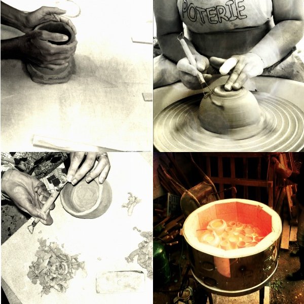 Les cuissons vont se faire pour transformer les matériaux: l’argile devient céramique, les composants de l’émail pour former un verre…Les matières et les couleurs se révèlent.