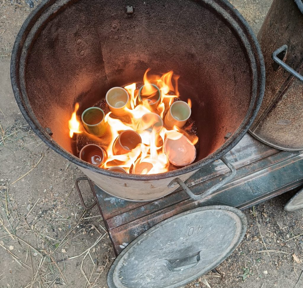 Cuisson raku. Enfumage des poteries